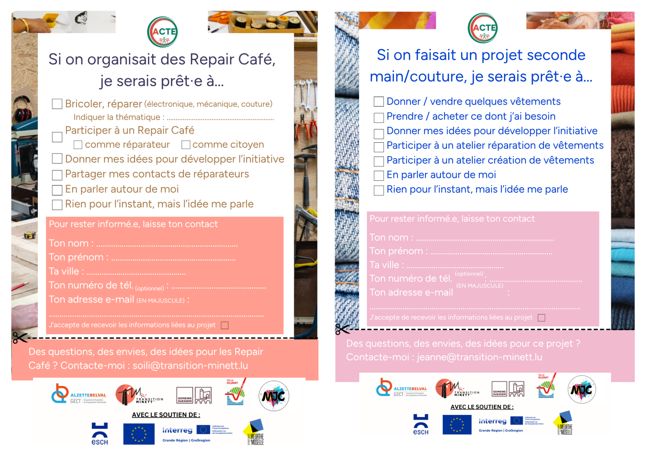 • Organiser des ateliers de couture et des marchés de seconde main sur le territoire d’Alzette Belval : donner une seconde vie aux vêtements grâce au don, aux ateliers de réparation et de transformation (upcycling) ;