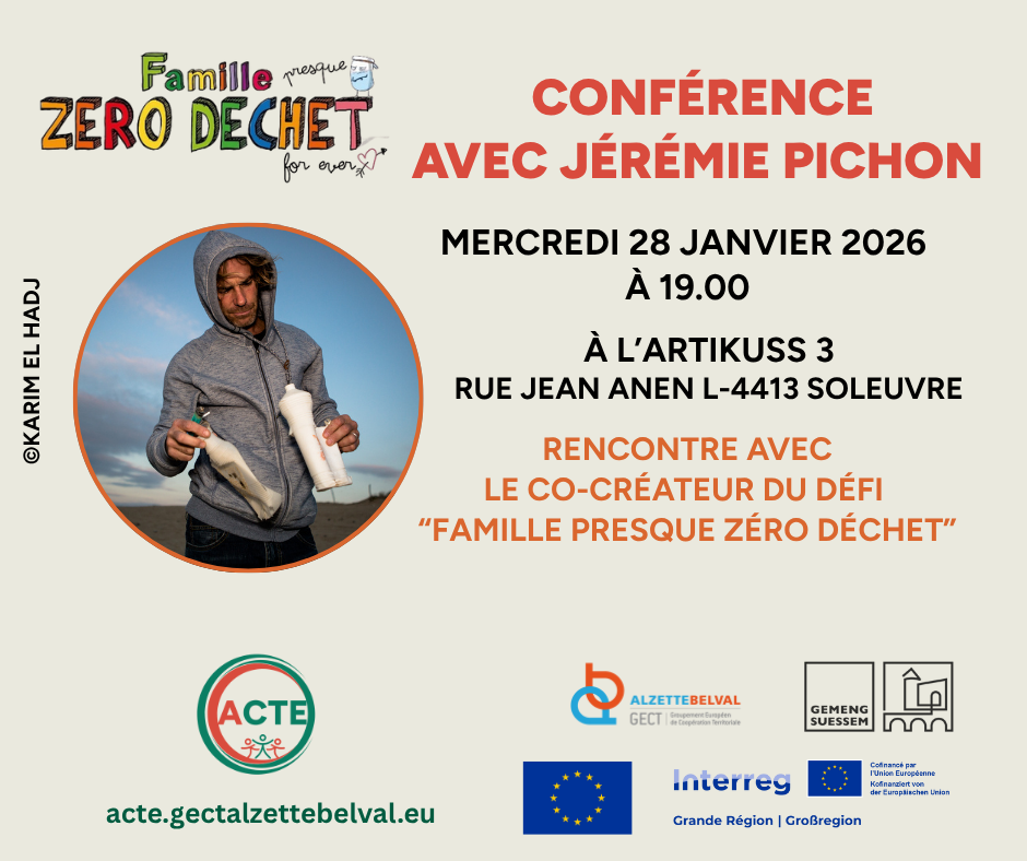 Réduire nos déchets, consommer autrement, transmettre des gestes durables à nos enfants : voici l’ambition du Challenge « Famille presque zéro déchet« , qui sera lancé en janvier 2026 sur le territoire d’Alzette Belval. Plusieurs familles du territoire s’engageront dans une aventure collective de 5 mois, rythmée par des ateliers, des rencontres et des découvertes concrètes pour alléger nos poubelles et notre impact sur la planète.