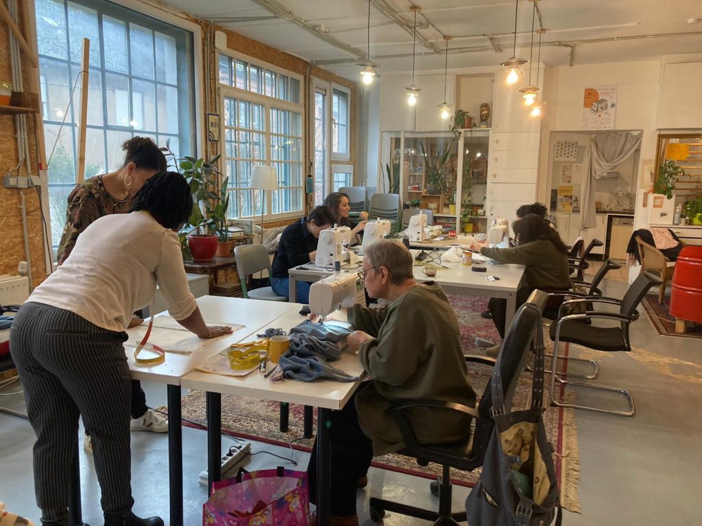 L’objectif était simple et concret : montrer aux participant.e.s les techniques du fil, comment utiliser une machine à coudre et comment créer soi-même.