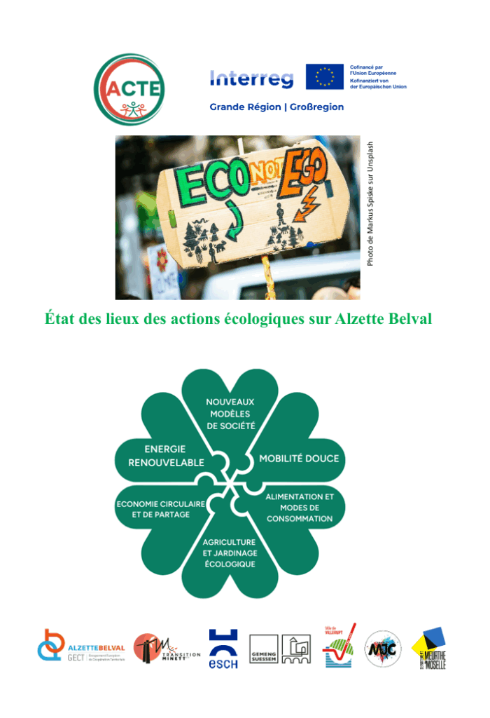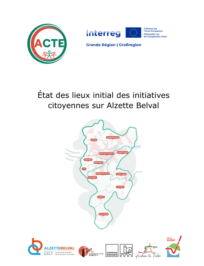 Cet état des lieux vise à donner un aperçu global de l’implication citoyenne à l’échelle des communes de l’agglomération d’Alzette Belval. Il s’inscrit dans le cadre du premier module de travail du projet ACTE, « Pour une agglomération plus résiliente : Repérer, Mobiliser, Engager les citoyens d’Alzette Belval ». Fruit des échanges avec les treize communes du groupement et avec les aménageurs institutionnels de l’agglomération, ce recueil présente les projets d’implication citoyenne existants et leurs résultats, tant positifs que négatifs.